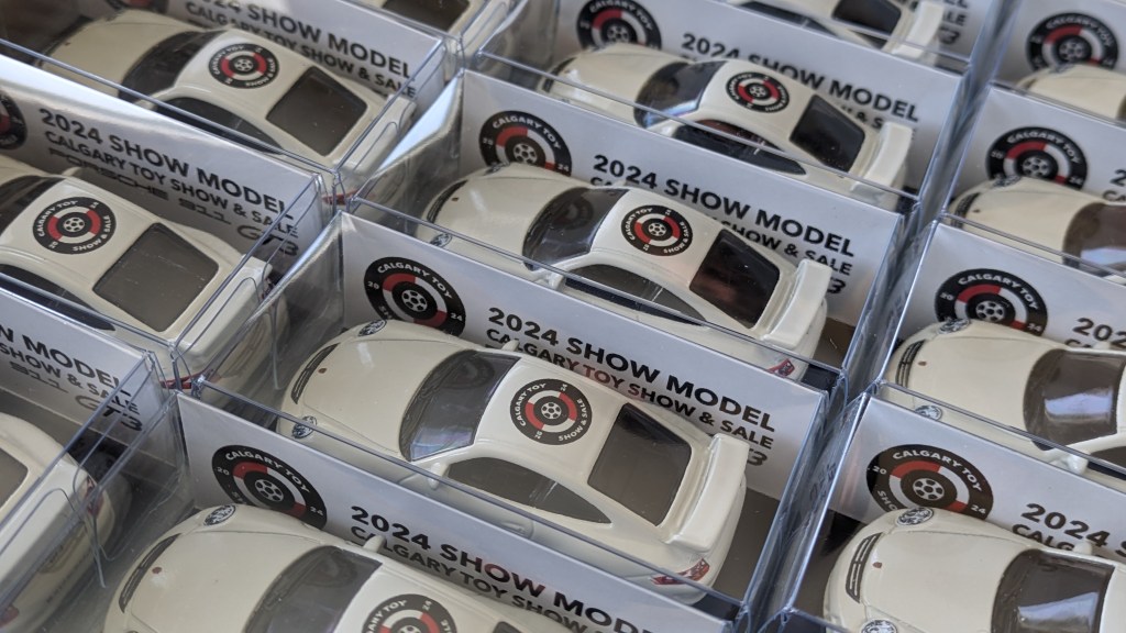 The Porsches are available at $15 each or 2/$25 – the perfect holiday gift for the diecast toy collector or Porsche-lover in your life. We’ll even throw a couple of snazzy Calgary Toy Show & Sale stickers in with every order!