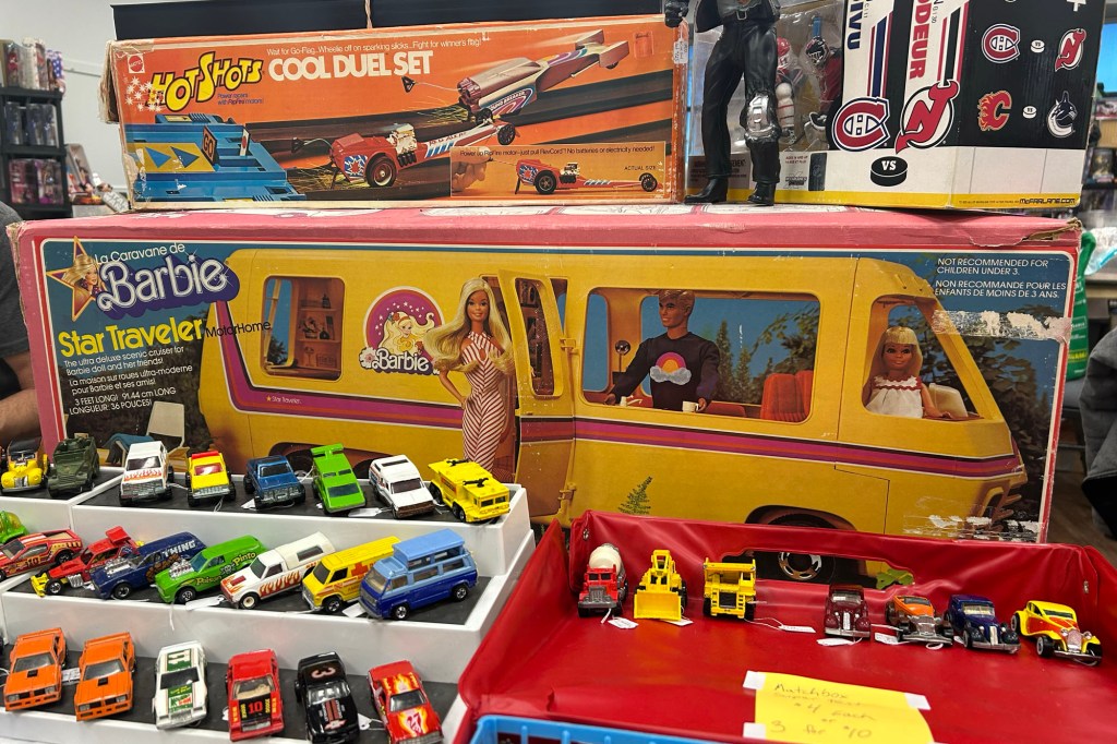 The show features more than 80 vendor tables across three rooms – the Gym, the Mountain View Room and the Panorama Room. They’re filled with thousands of collectable and vintage toys: everything from new pocket-money items to rare vintage pieces costing hundreds of dollars. The exact mix of items for sale varies from show to show, depending on which vendors are present. There are usually Hot Wheels and other diecast cars, LEGO, Funko Pops, Pokémon cards and toys, Barbie, Disney, Star Wars, action figures, board games and many other types of toys.